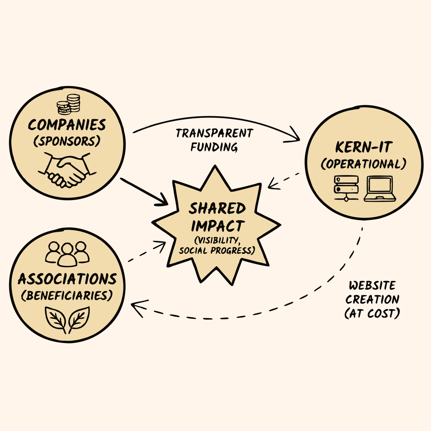 Our success is built on a synergy of forces between companies (sponsors), non-profits (beneficiaries), and KERN-IT (technical operator).